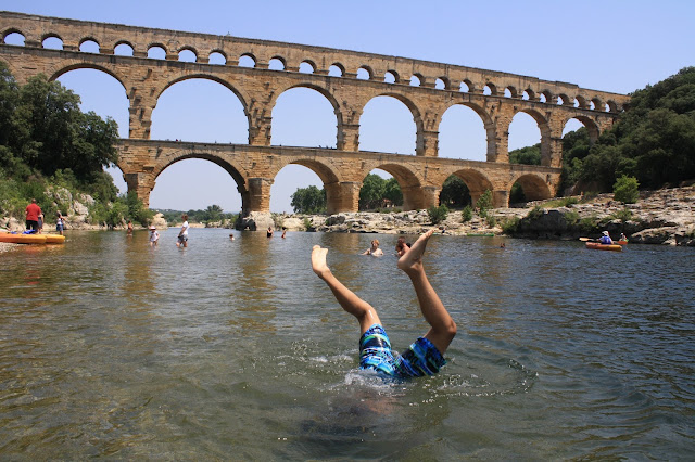 The Weather was sunny and hot next morning and we drove to Pont du Gard for a picnic and a swim in the river. So much fun.